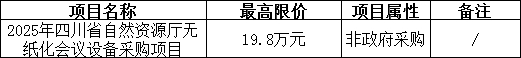 四川省自然资源厅办公室拟对“2025年四川省自然资源厅无纸化会议设备采购项目”采用遴选方式进行采购,欢迎供应商参加该项目的遴选活动。