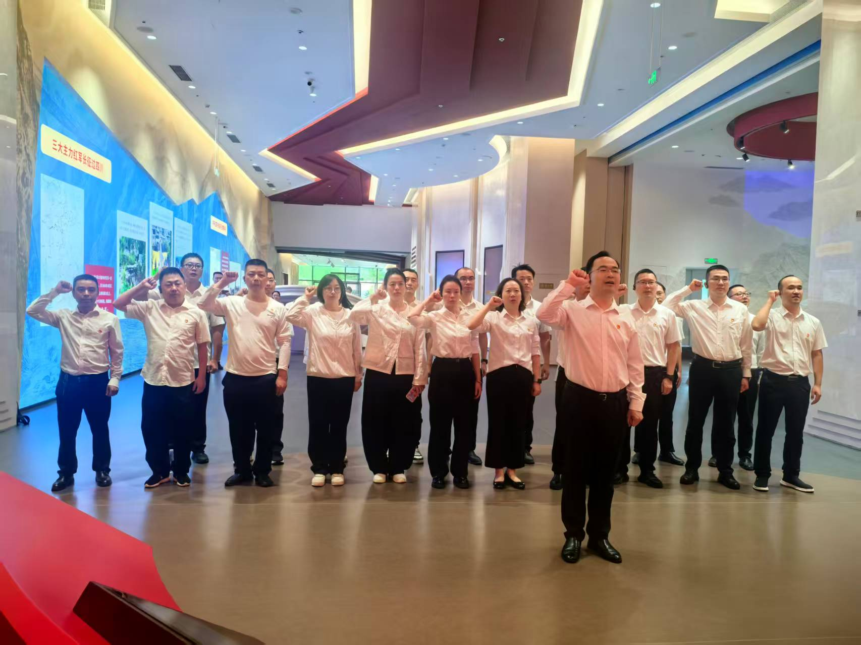 参观结束后,全体党员在鲜红的党旗下整齐列队,由王铜山领誓,庄严重温入党誓词。誓言铿锵有力,彰显了全体党员传承长征精神、践行初心使命的坚定决心。