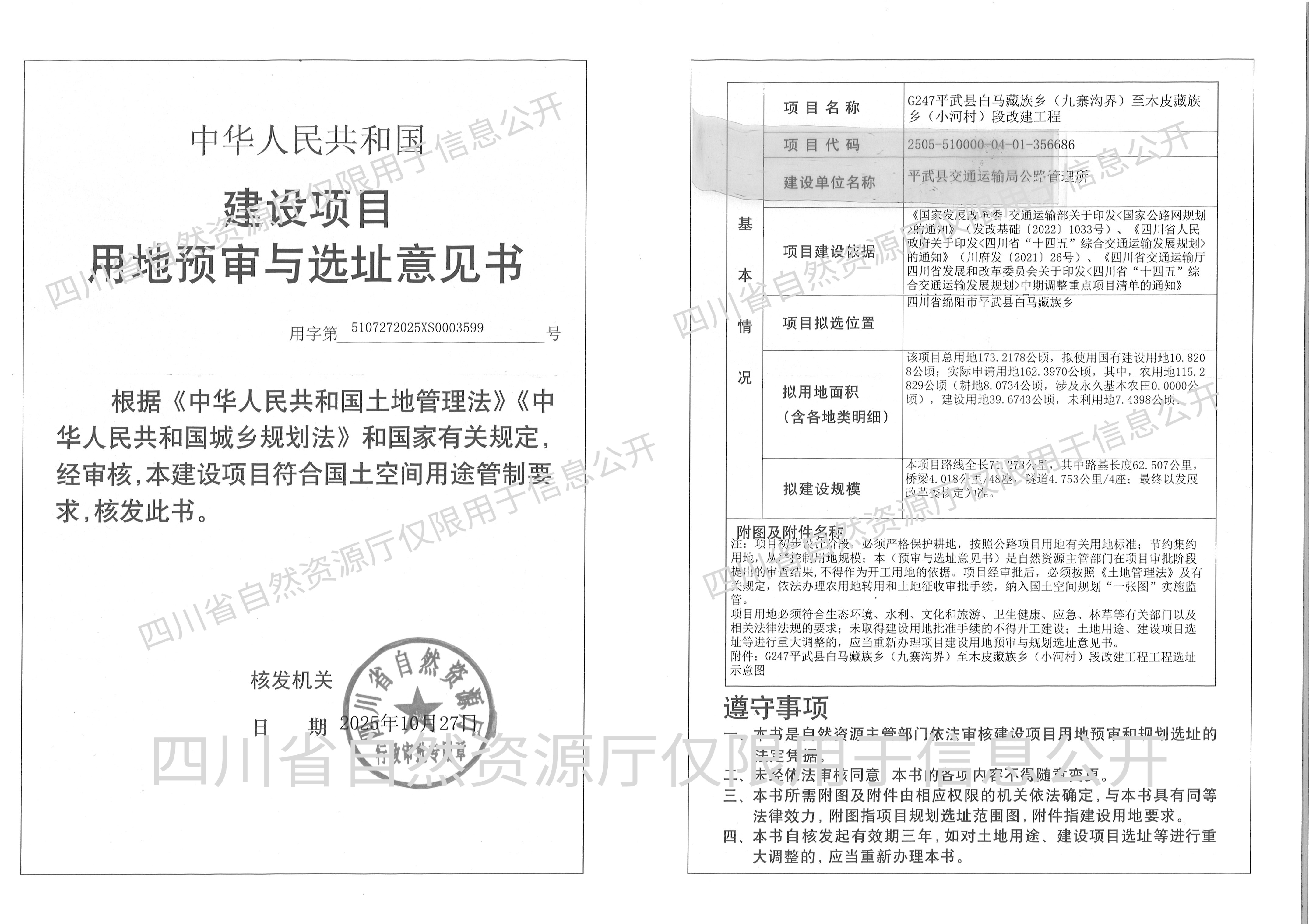 G247平武县白马藏族乡(九寨沟界)至木皮藏族乡(小河村)段改建工程