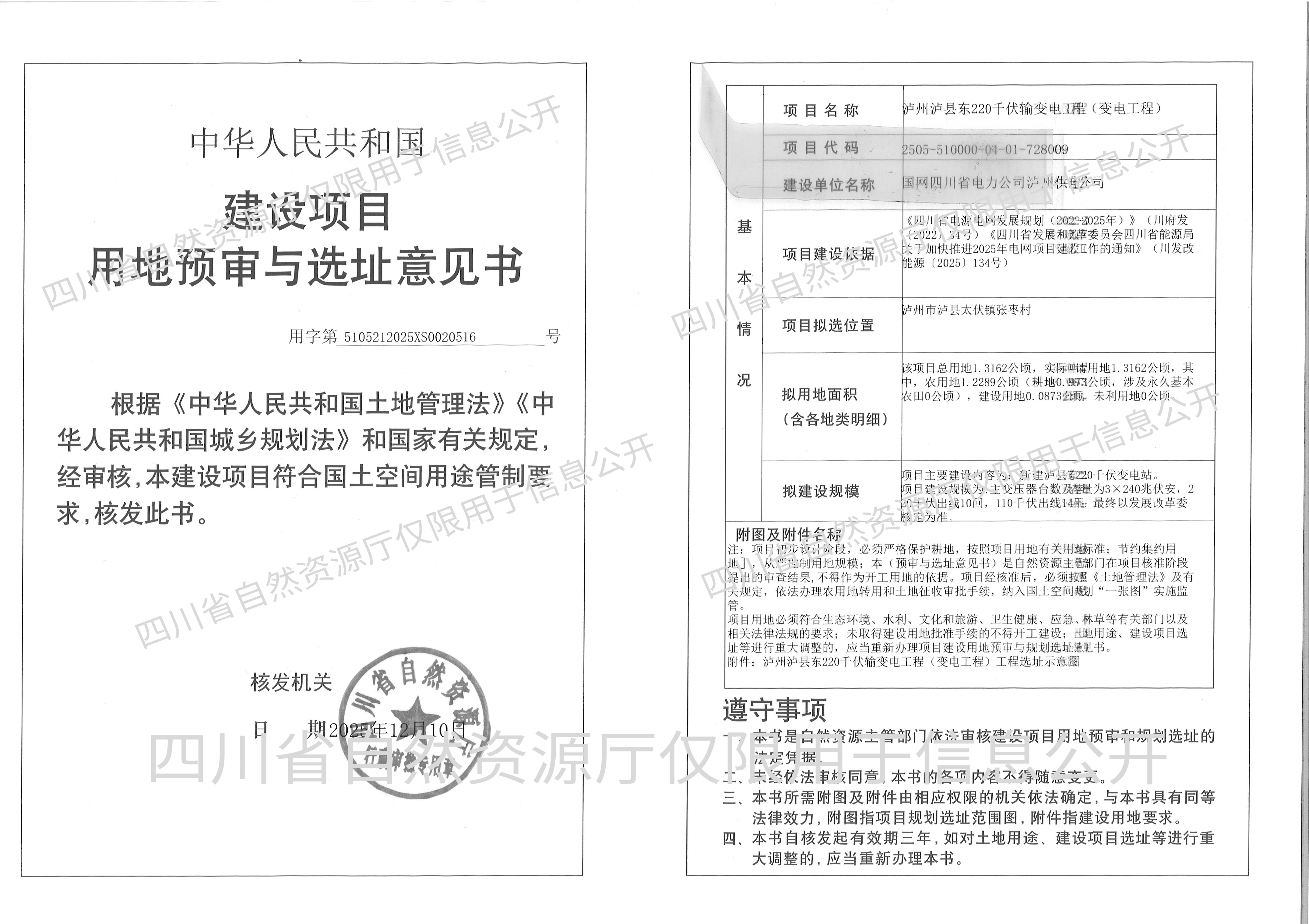 泸州泸县东220千伏输变电工程(变电工程)
