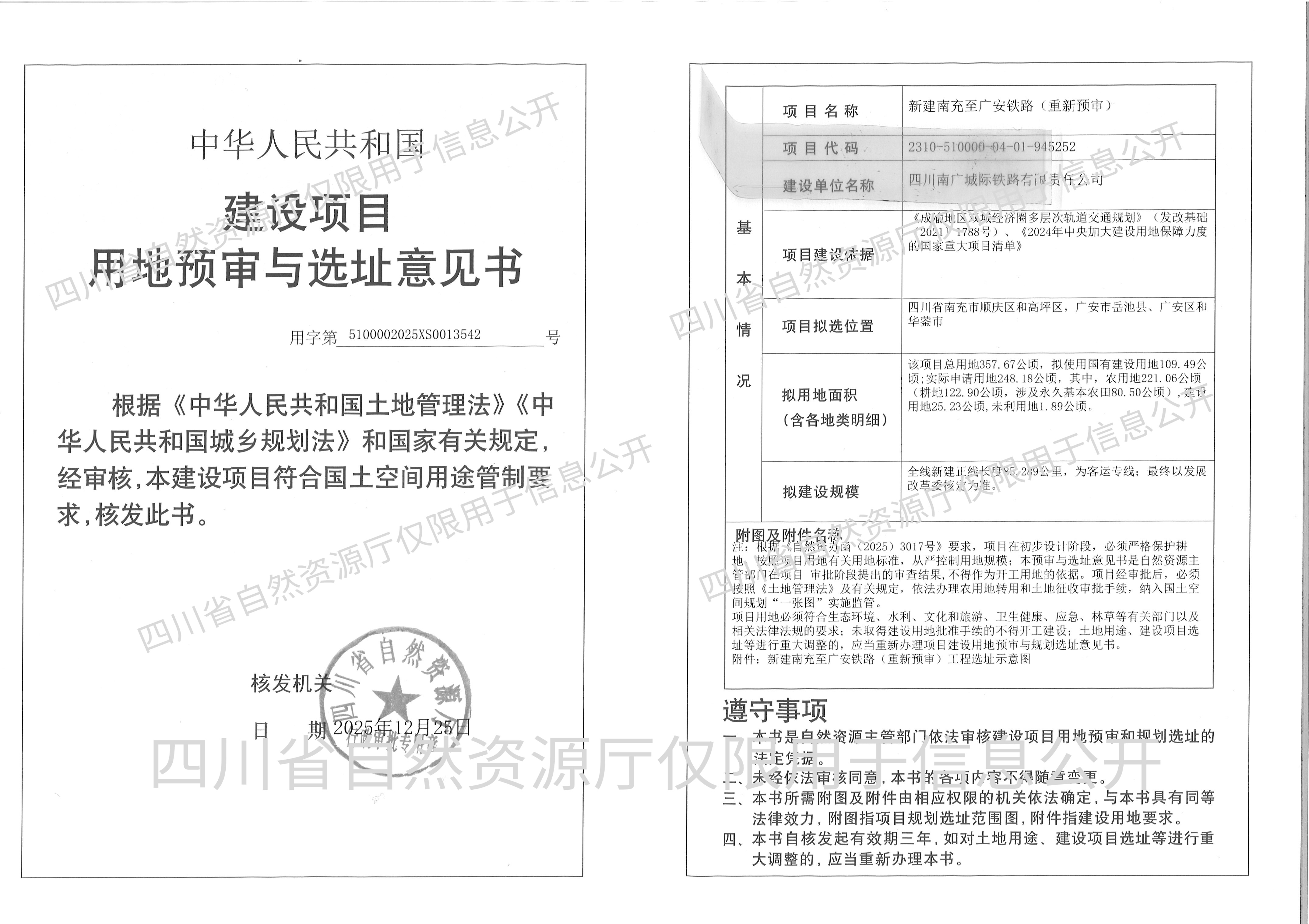 新建南充至广安铁路(重新预审)