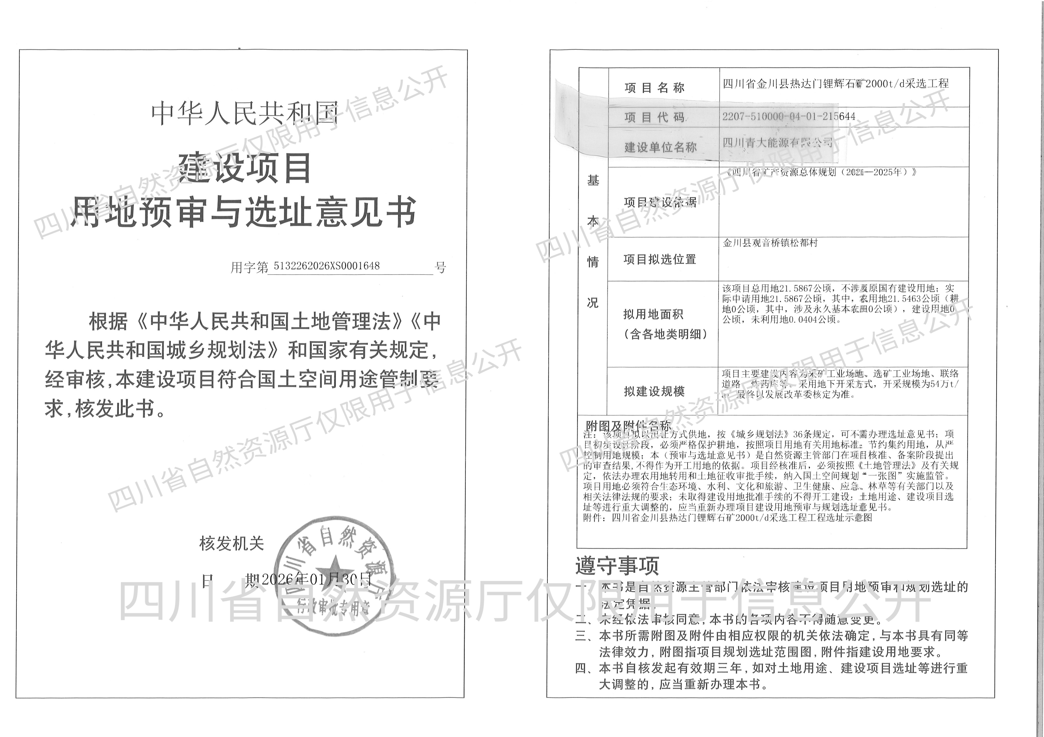 四川省金川县热达门锂辉石矿2000t/d采选工程