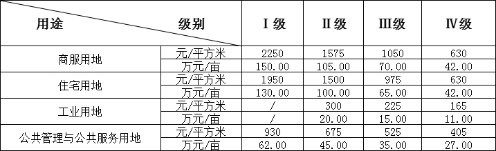 注:工业用地Ⅰ级参照工业用地Ⅱ级基准地价。