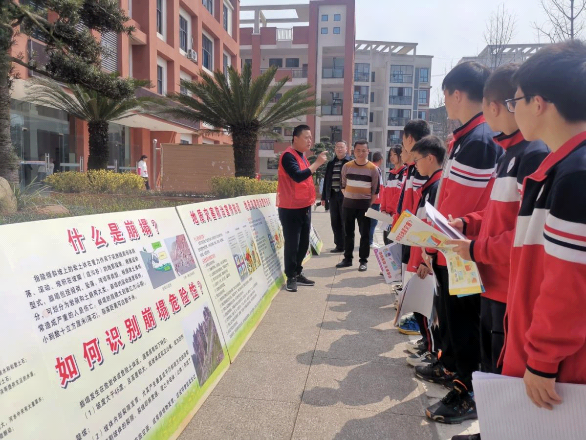 活动现场,志愿者通过现场授课、展板和PPT演示等方式向蕨溪镇初级中学530余名师生讲解地质灾害防治知识,详细介绍了什么是地质灾害、地质灾害发生前有什么预警以及如何现场逃生保护自己等知识。
