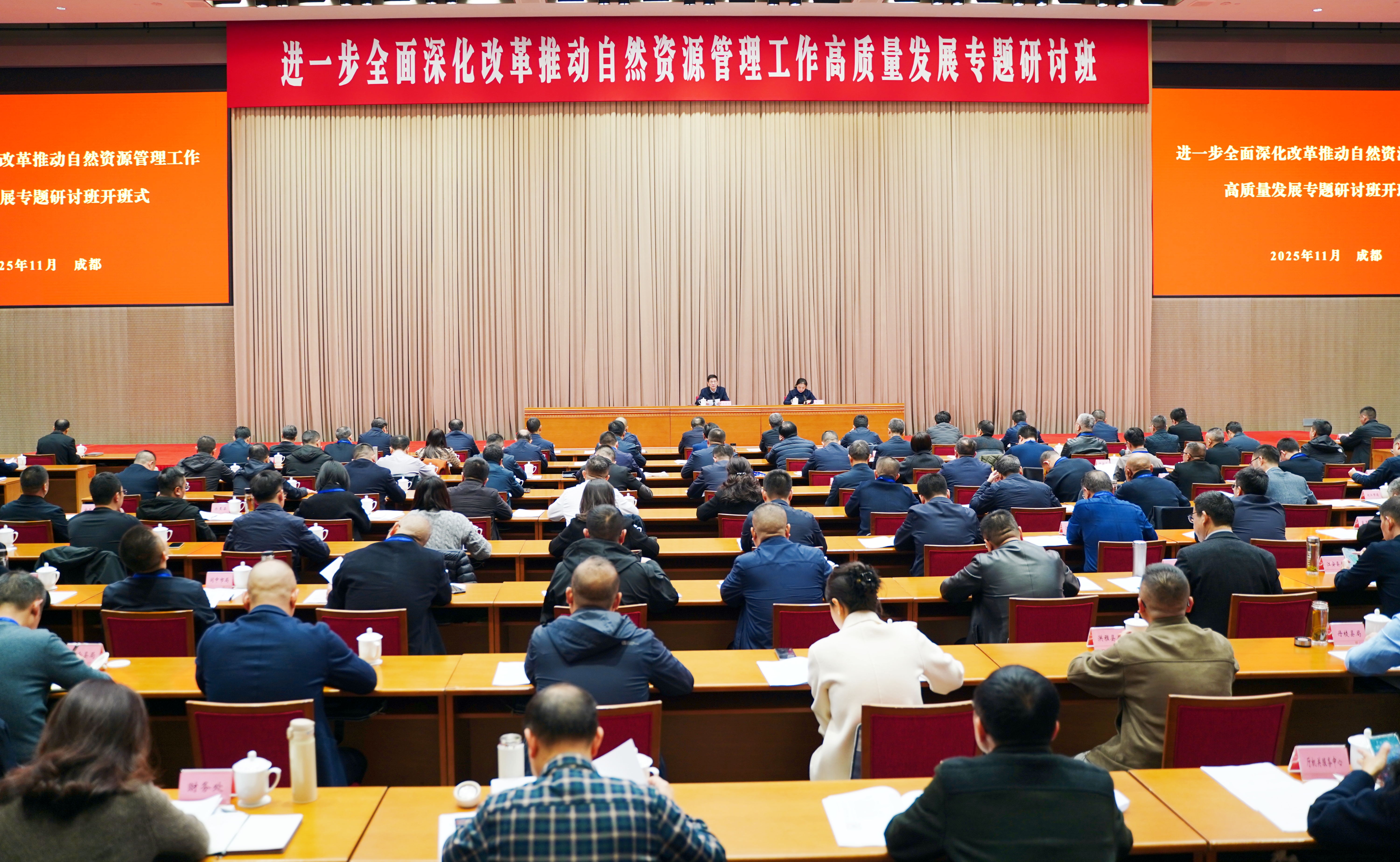11月19日,由省委组织部和省自然资源厅联合举办的全省进一步全面深化改革推动自然资源管理工作高质量发展专题研讨班在成都开班。省自然资源厅党组书记、厅长徐志文出席开班式并作动员讲话。省委组织部干部教育培训处处长于跃主持开班式。