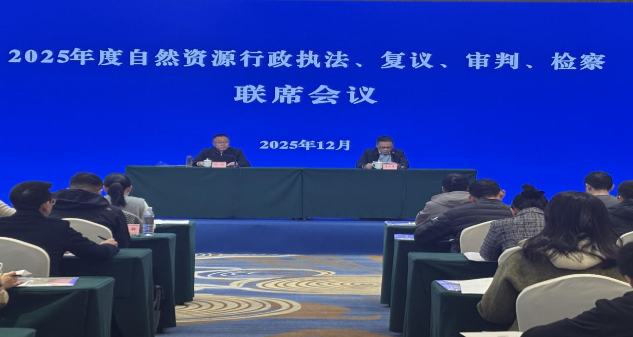 12月18日,为深入学习贯彻习近平法治思想,研究解决自然资源领域行政执法、行政争议预防和实质化解有关问题,省自然资源厅结合“12·4”国家宪法日和自然资源法治宣传教育月活动,联合省法院、检察院、司法厅在德阳市召开2025年度自然资源行政执法、复议、审判、检察联席会议。省自然资源厅总规划师汪小琦主持会议。省自然资源厅副厅长邓斌出席并致辞。