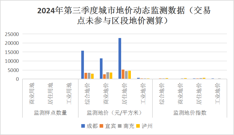 按照自然资源部有关要求,在105个主要城市开展国家级城市地价动态监测(涉及我省为成都、宜宾、南充、泸州4市),其他市、县结合实际情况自行开展并公示。