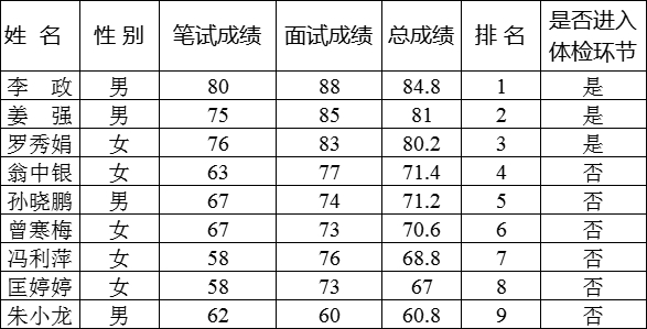 根据《四川省自然资源资产储备中心关于2025年公开考核招聘专业技术人员的公告》,12月27日至28日,笔试、面试已全部结束。现将参考考生成绩公布如下。