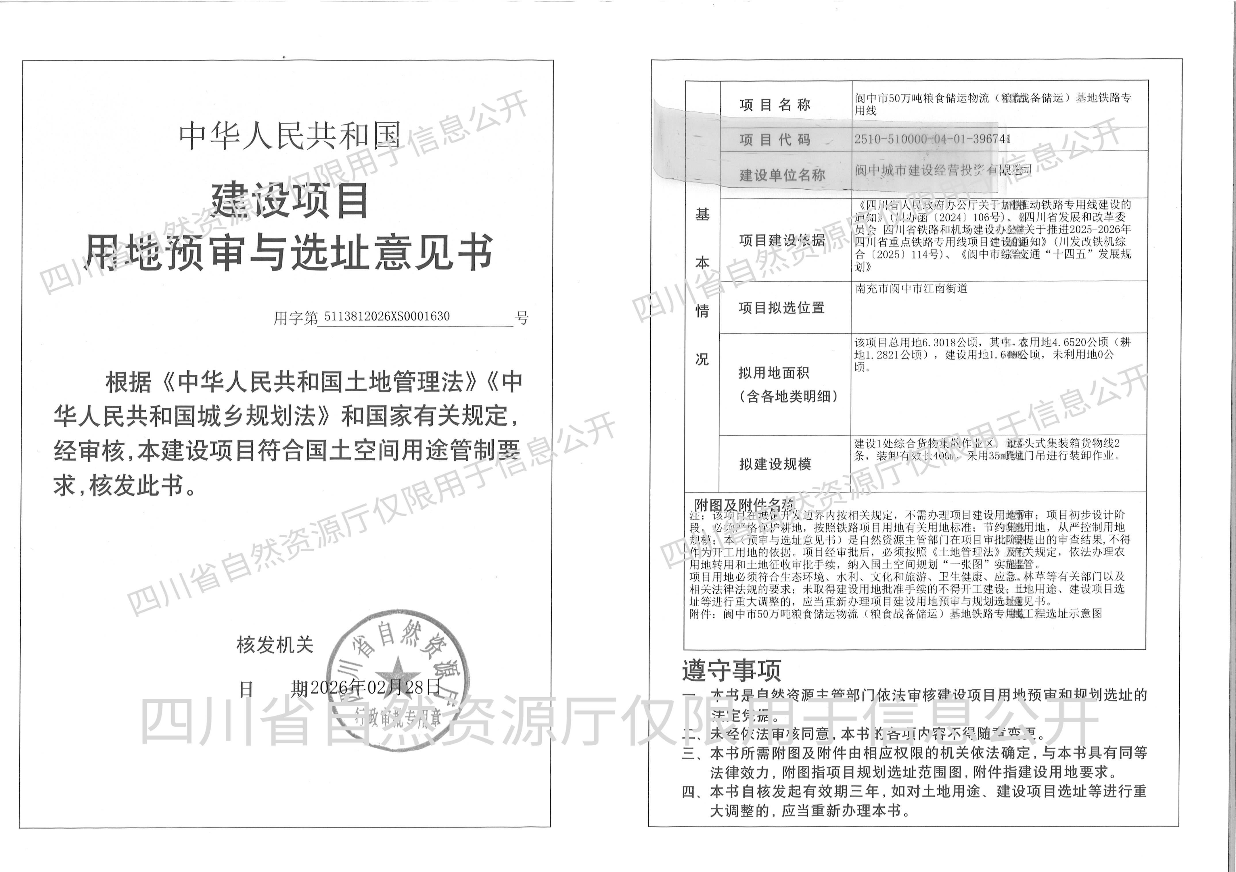 阆中市50万吨粮食储运物流(粮食战备储运)基地铁路专用线
